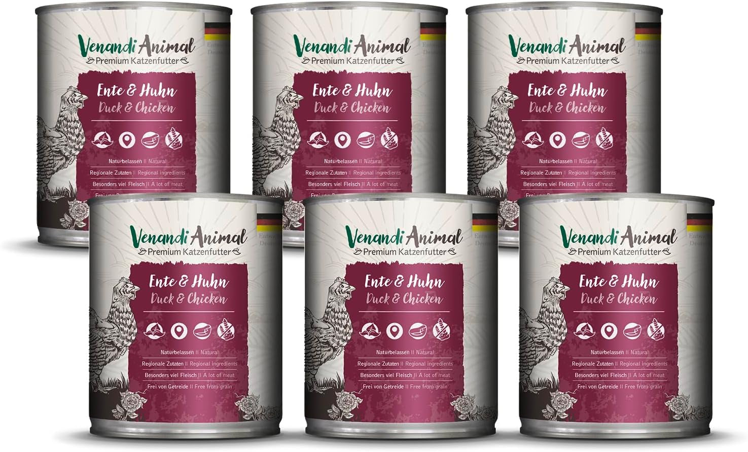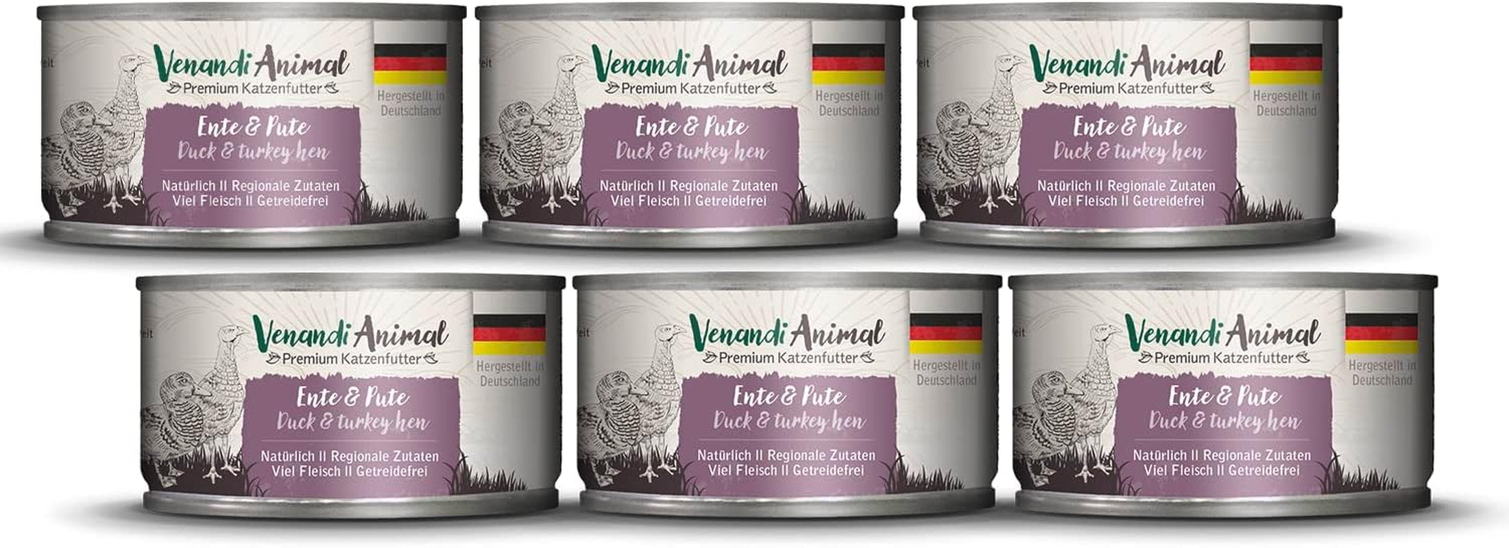 Venandi Animal Premium Hrană umedă pentru pisici, Tasting Pack III, pui, curcan, vită, pui + iepure, vițel, curcan, 6 X 200 G, fără cereale și naturală, 1.2 Kg -