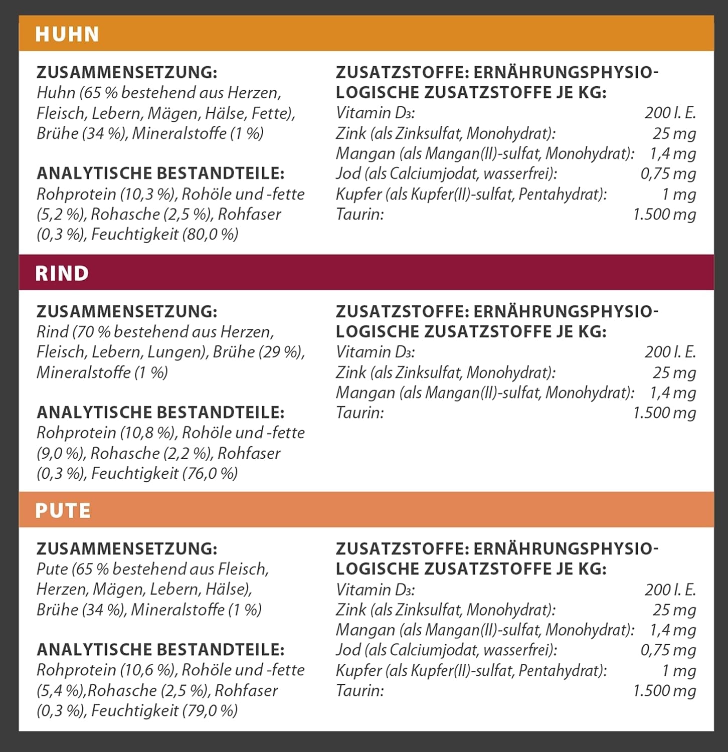 Dehner Premium Cat Food Sensitive Multipack, Hrană umedă, Pentru pisici sensibile din punct de vedere nutrițional, 4 X pui / vită / curcan fiecare, 12 X pungi de 100 G (1,2 kg) -