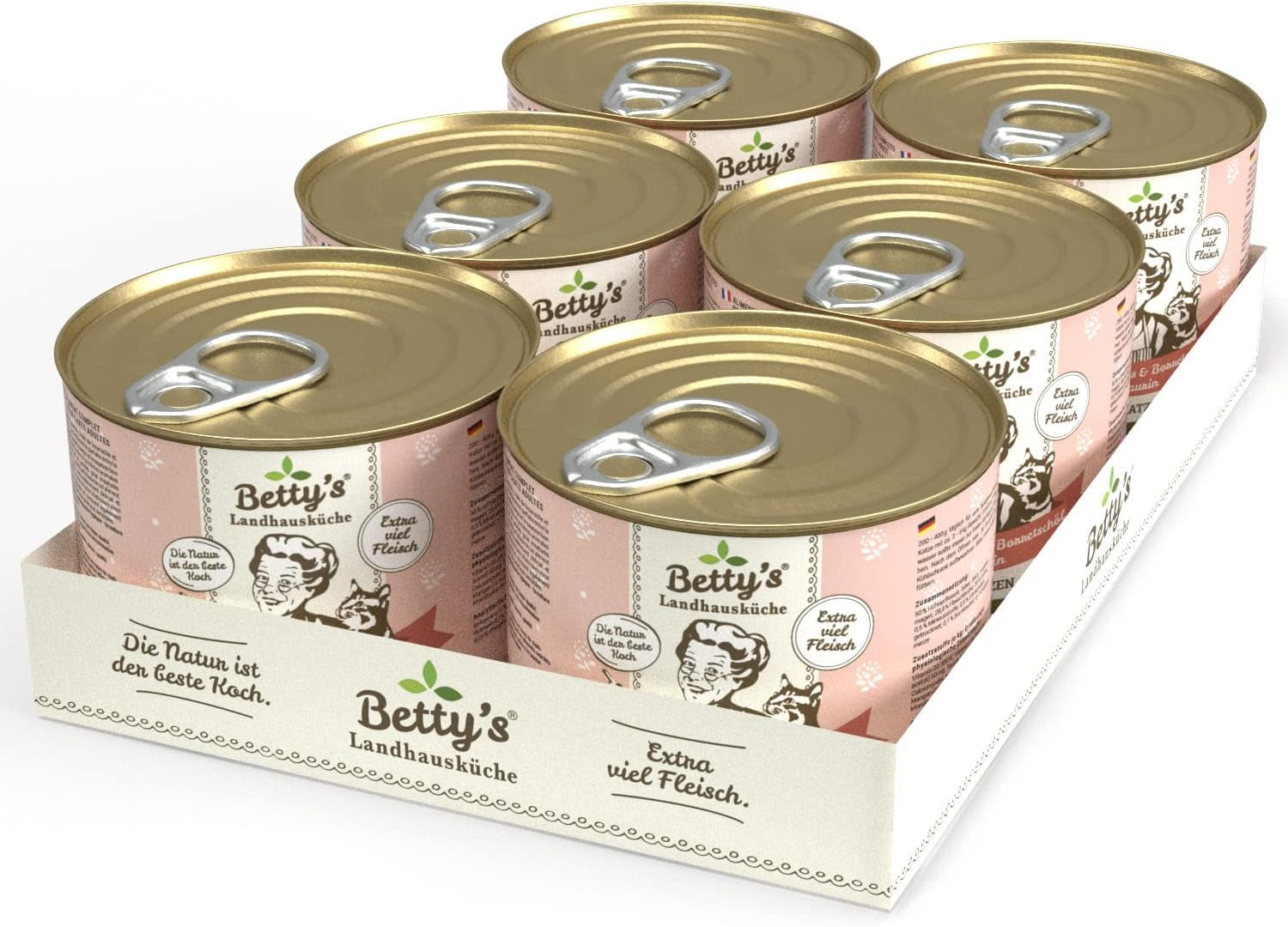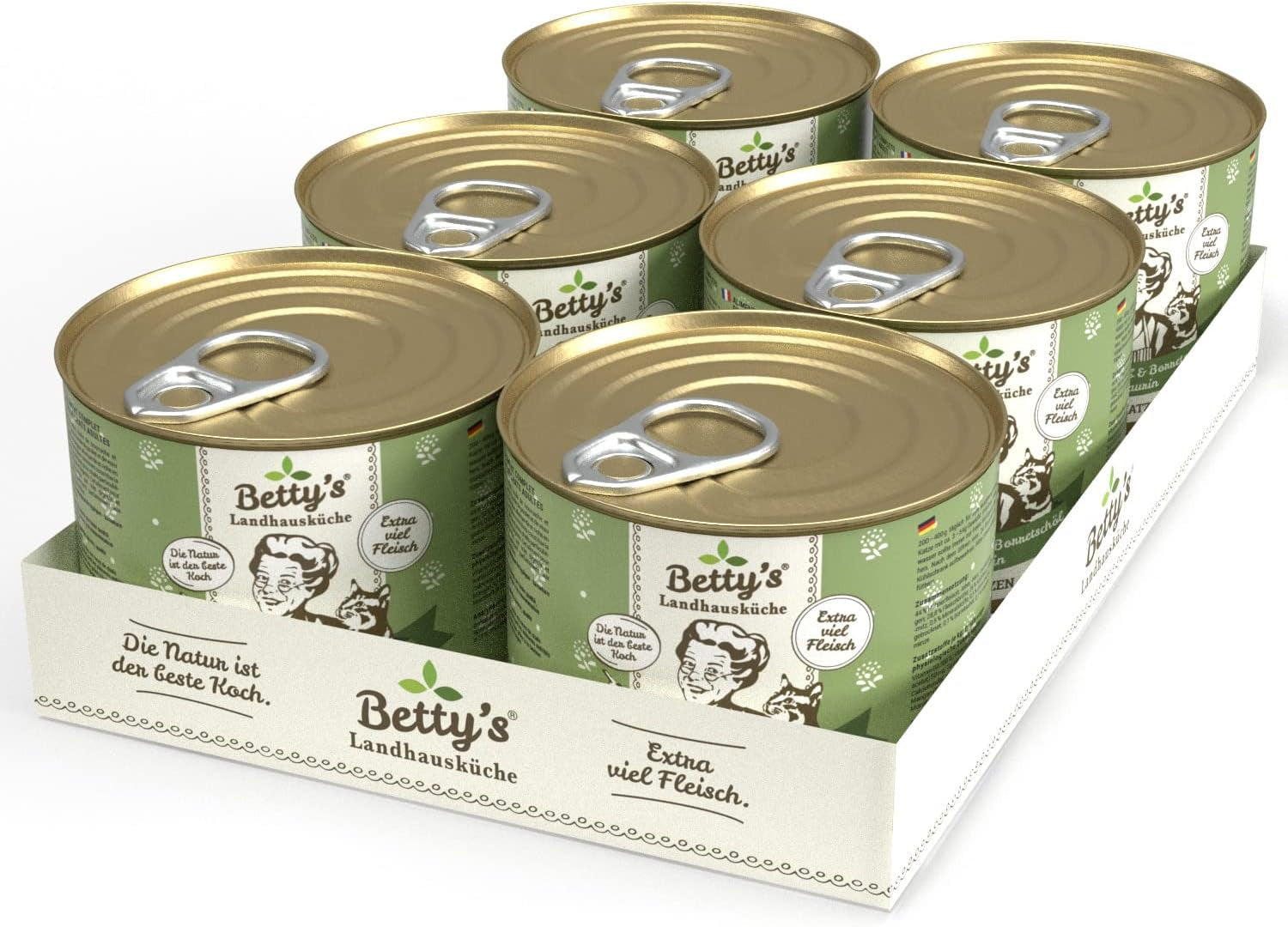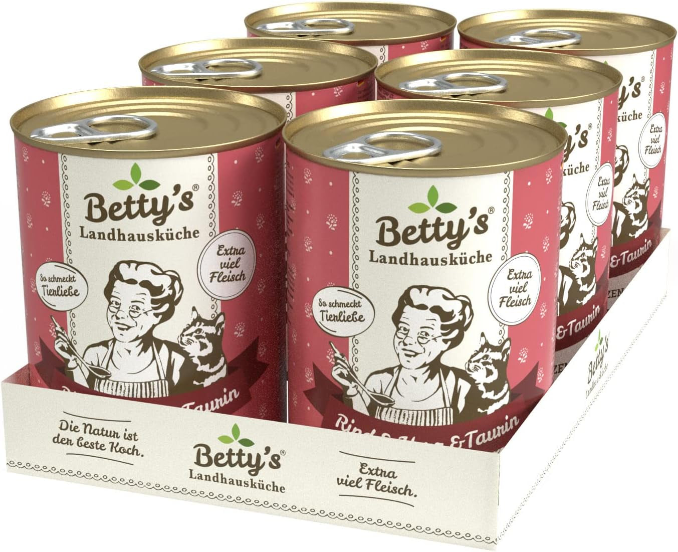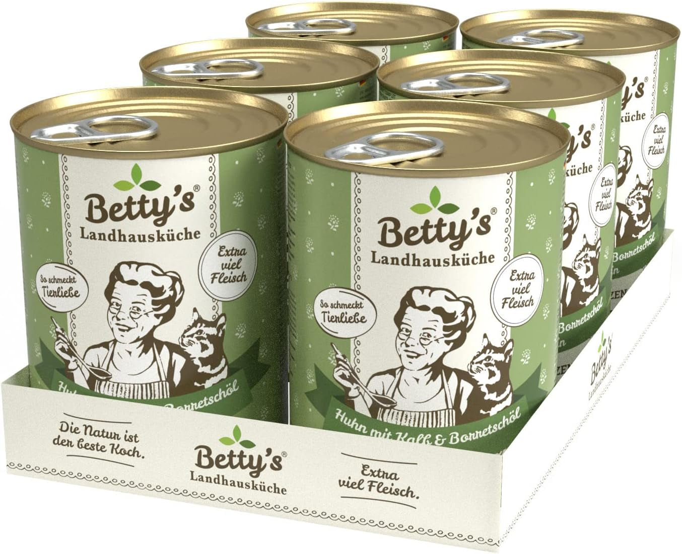Betty'S Landhausküche cutie de hrană umedă pentru pisici, Fără cereale, Cea mai bună calitate, Carne de înaltă calitate, Gently cooked, Potrivit pentru toate rasele de pisici, Pui și fazan cu ulei de borangic 6 X 200 G -