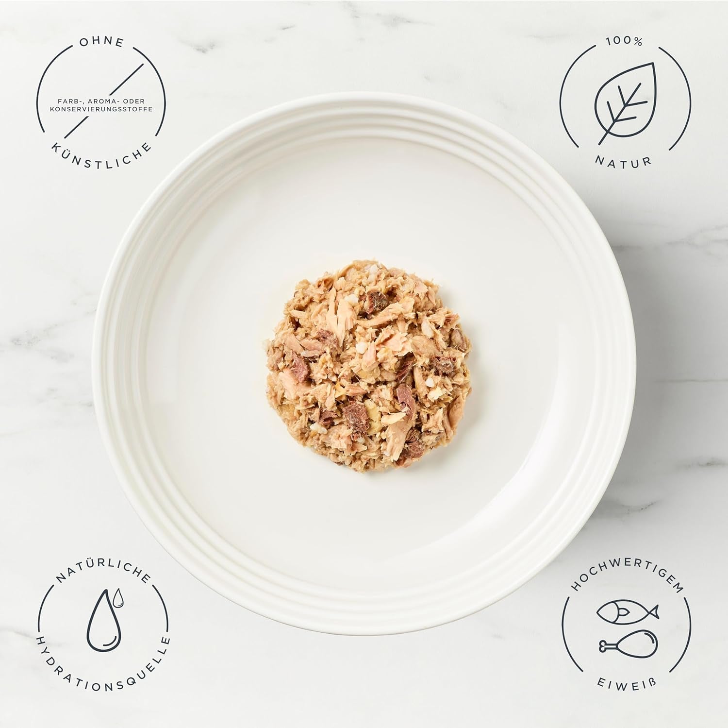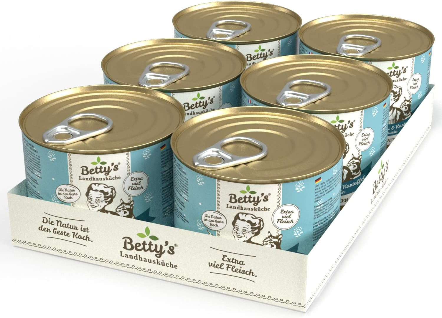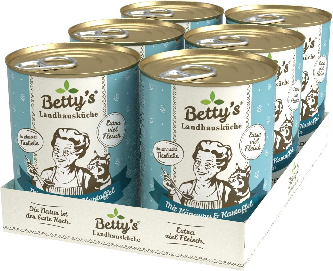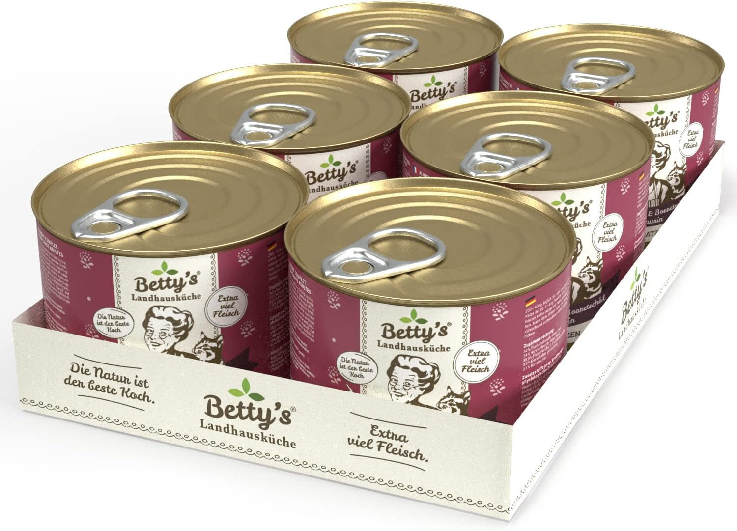 Betty'S Landhausküche cutie de hrană umedă pentru pisici, Fără cereale, Cea mai bună calitate, Carne de înaltă calitate, Gently cooked, Potrivit pentru toate rasele de pisici, Pui și fazan cu ulei de borangic 6 X 200 G -