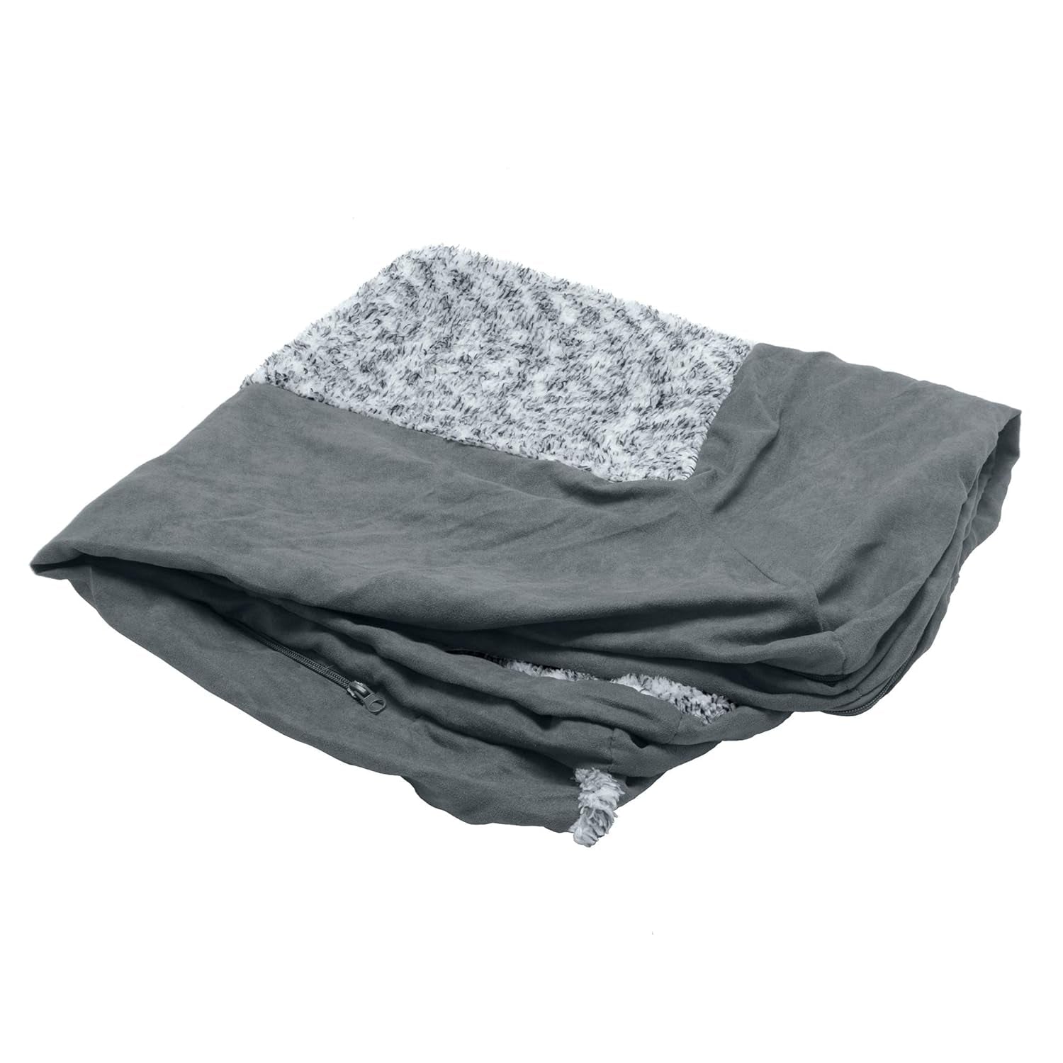 Pat pentru pisici de interior, lavabil, cu role de gât detașabile, pentru animale de companie de până la 4,1 kg – Covoraș de pluș cu imprimeu de diamant – Gri, mărimea S -