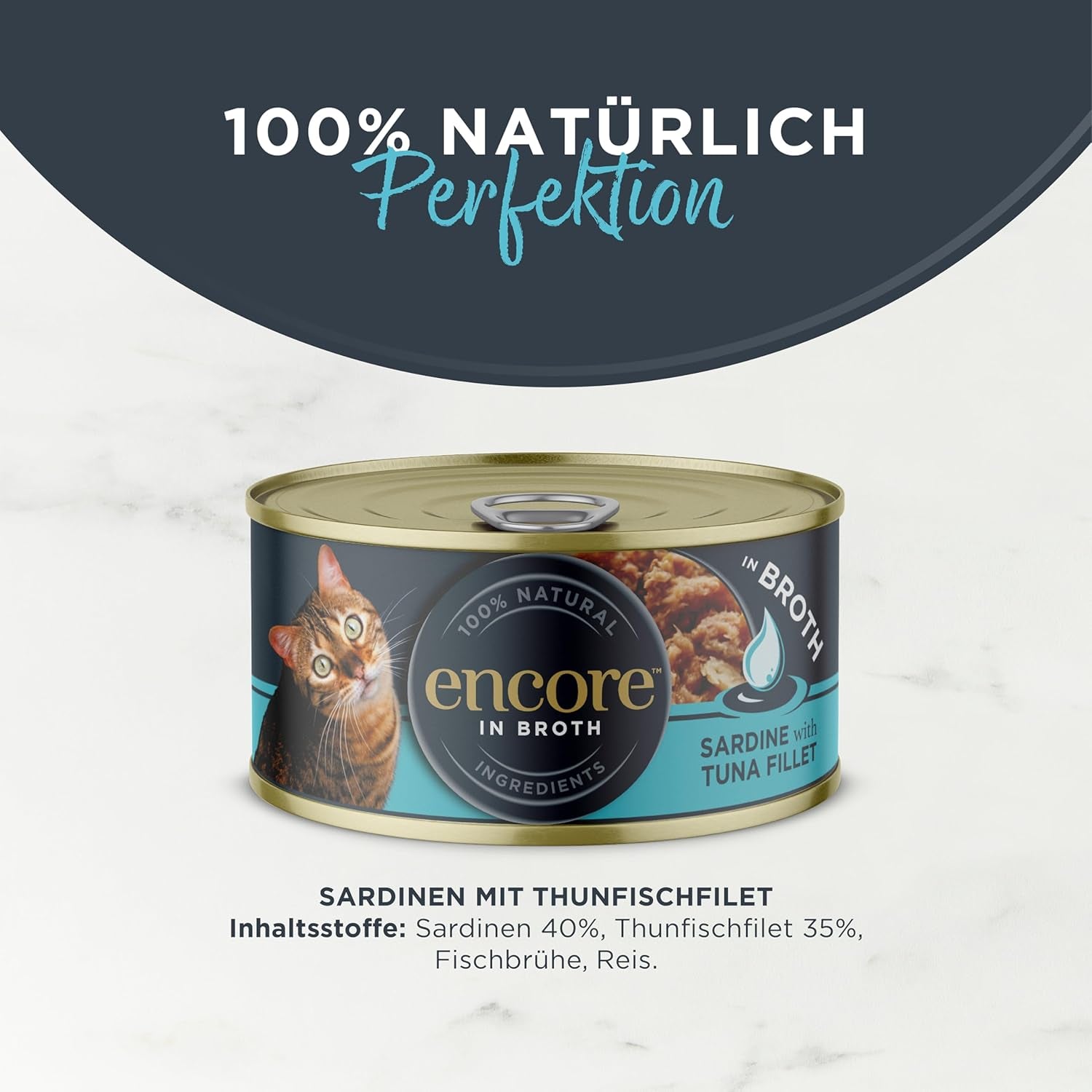 Encore Premium 100% Natural Hrană umedă la conservă pentru pisici cu sardine și file de ton - pachet de 16 X 70G -