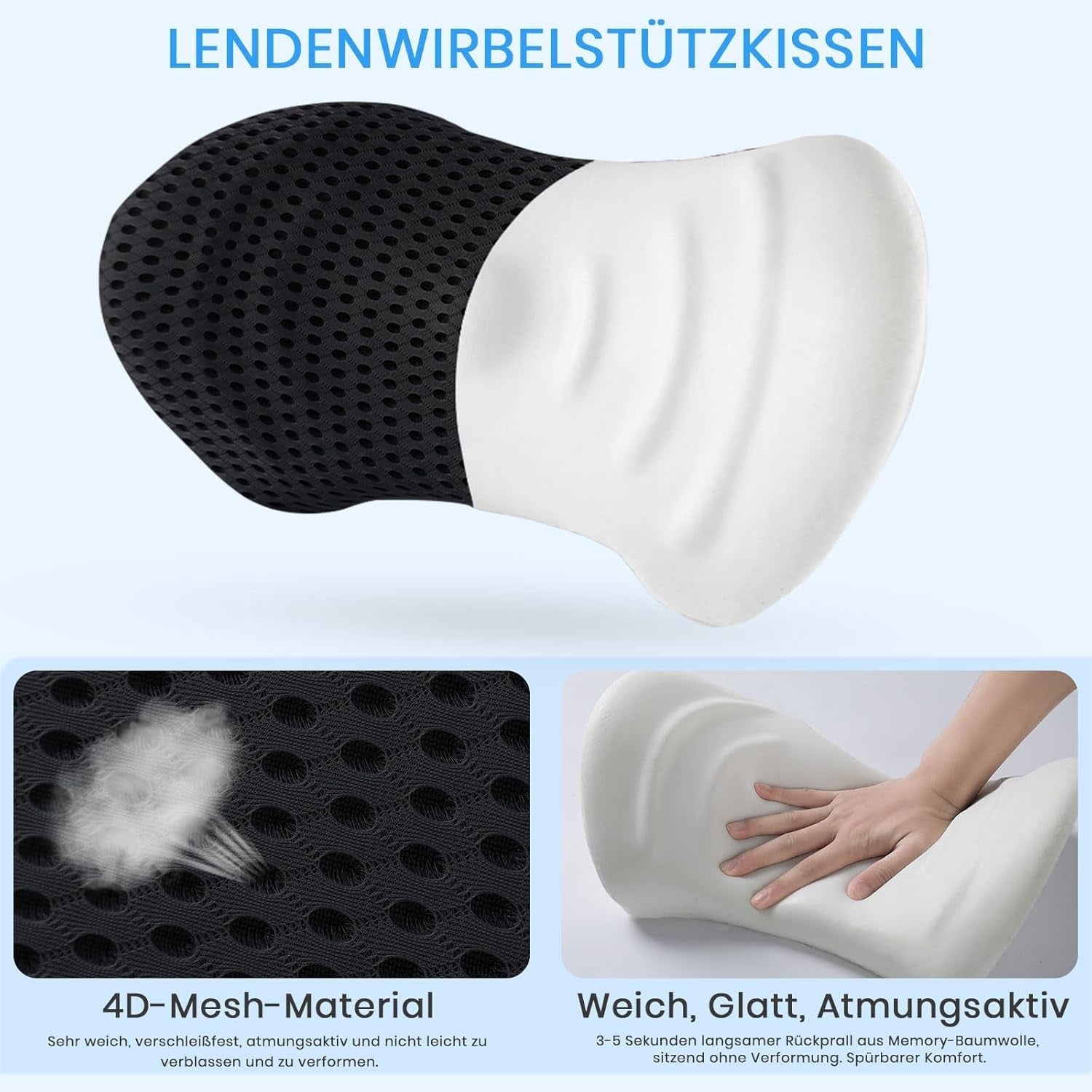 Această pernă spate ergonomică pentru scaune de birou este fabricată din țesătură cu plasă 4D. Țesătura respirabilă asigură echilibrul corect între suport și confort.