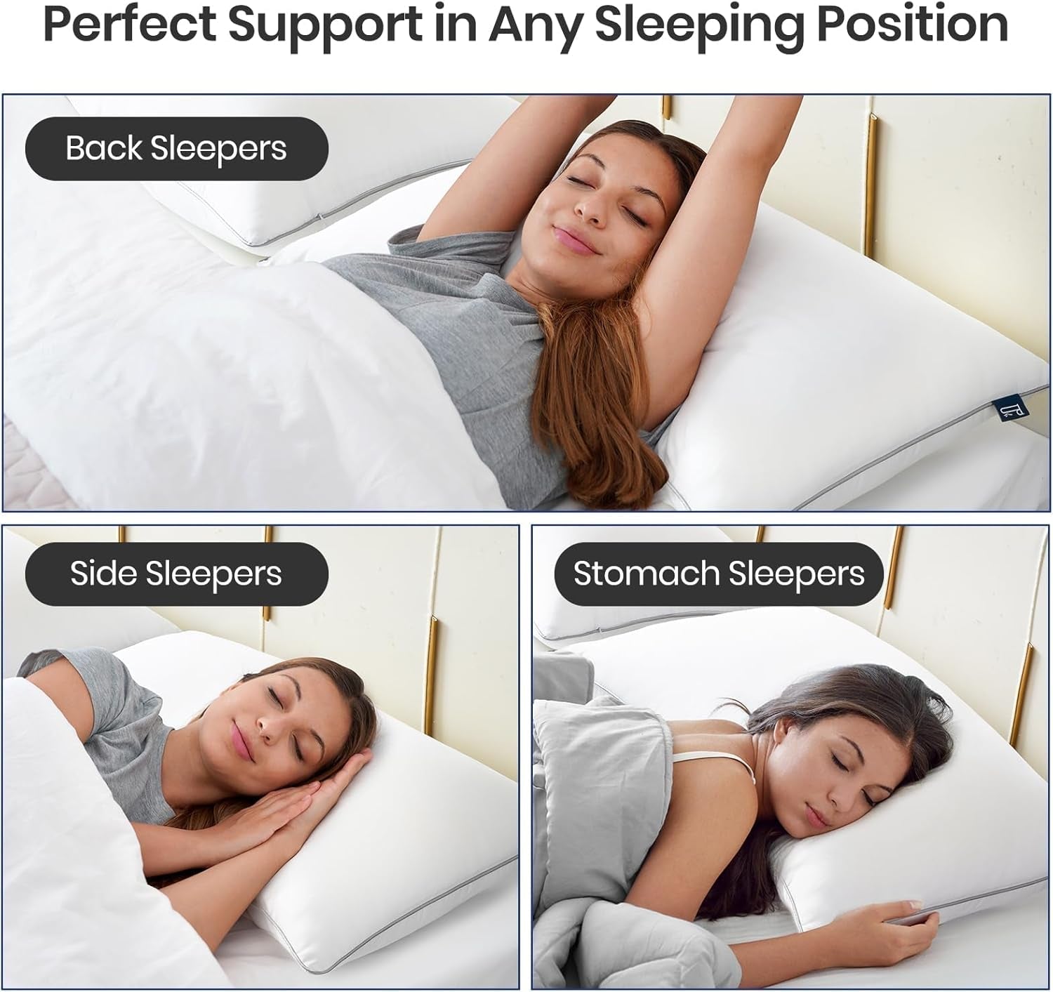 - Luxul la domiciliu: Construcția fără deplasare asigură că pernele nu se aplatizează sau alunecă niciodată de dedesubt, indiferent de poziția de dormit pe care o preferați. Cu senzația lor moale, pufoasă și construcția de înaltă calitate, vă veți bucura cu siguranță de experiența luxului de hotel în propria casă.