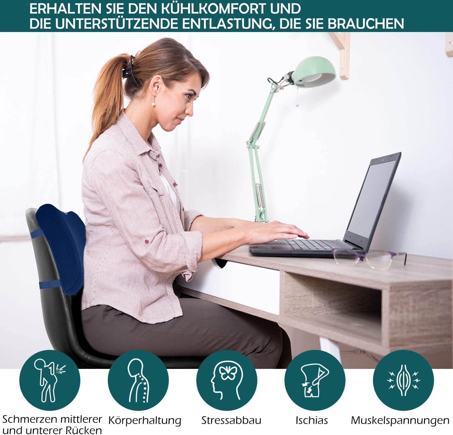 - ðŸª'CONFORT OPTIM: pernă ergonomică care susține coloana vertebrală, asigură confort maxim și promovează munca eficientă.