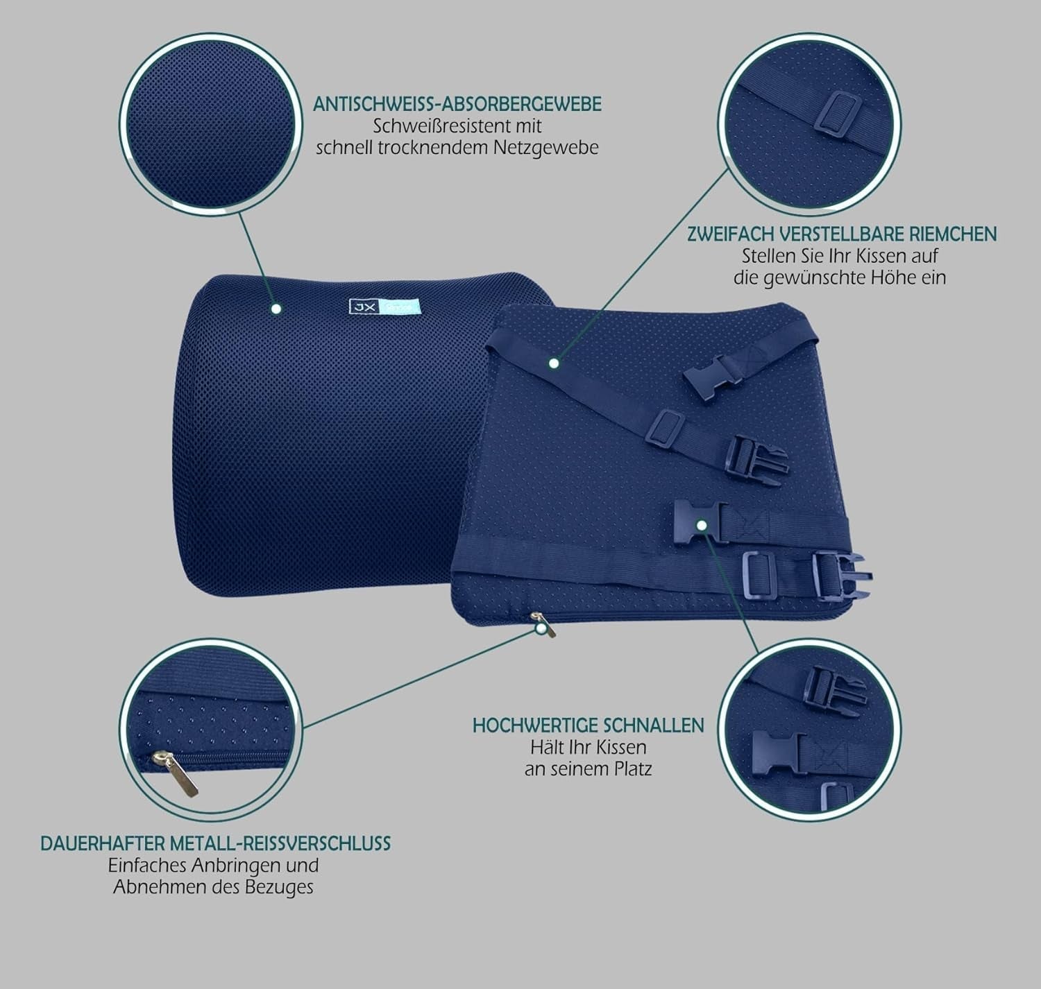 Perna spate ergonomică albastră ameliorează și previne durerile de spate - pernă lombară din spumă de memorie pentru birou, scaun cu rotile, acasă (albastru marin)