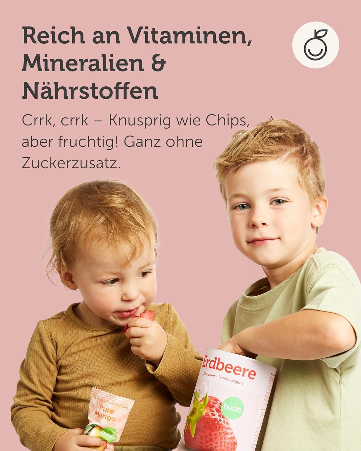 Fructele noastre liofilizate sunt făcute din 100% fructe. Ele sunt vegane, fără zahăr adăugat & fără coloranți & conservanți, dar cu aromă de fructe 100%.
