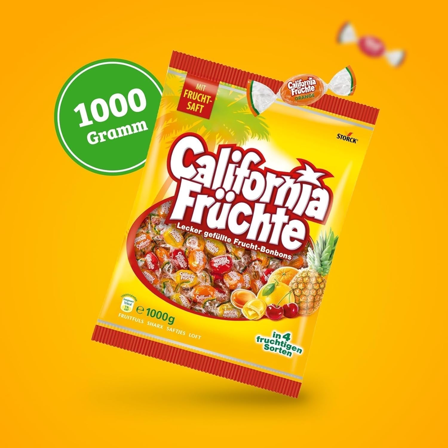 Conținutul livrării: 1 x 1000 g fructe California / Bomboane umplute ambalate individual cu suc de fructe / Pachet vrac / Ideal pentru partajare, gustare și în mișcare