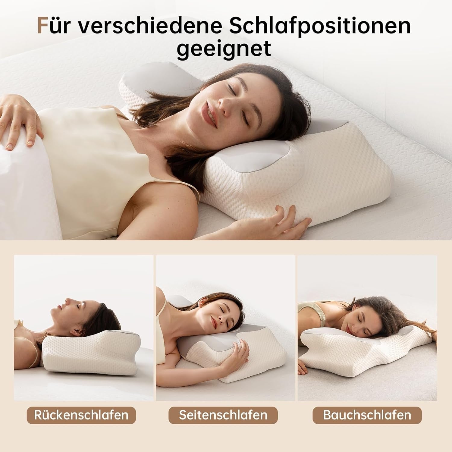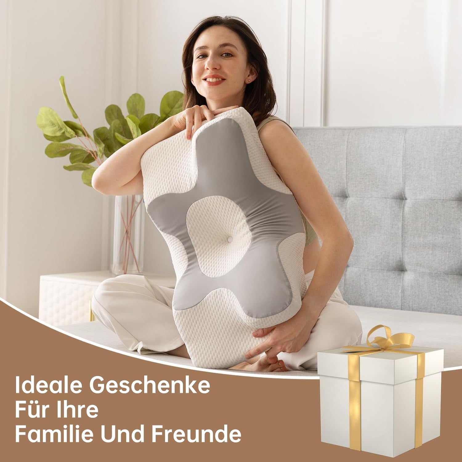 Homyrium Pernă ergonomică pentru gât Pernă ortopedică Pernă de sprijin pentru gât din spumă de memorie Pernă anti sforăit Pernă pentru dormit lateral, spate și stomac gri