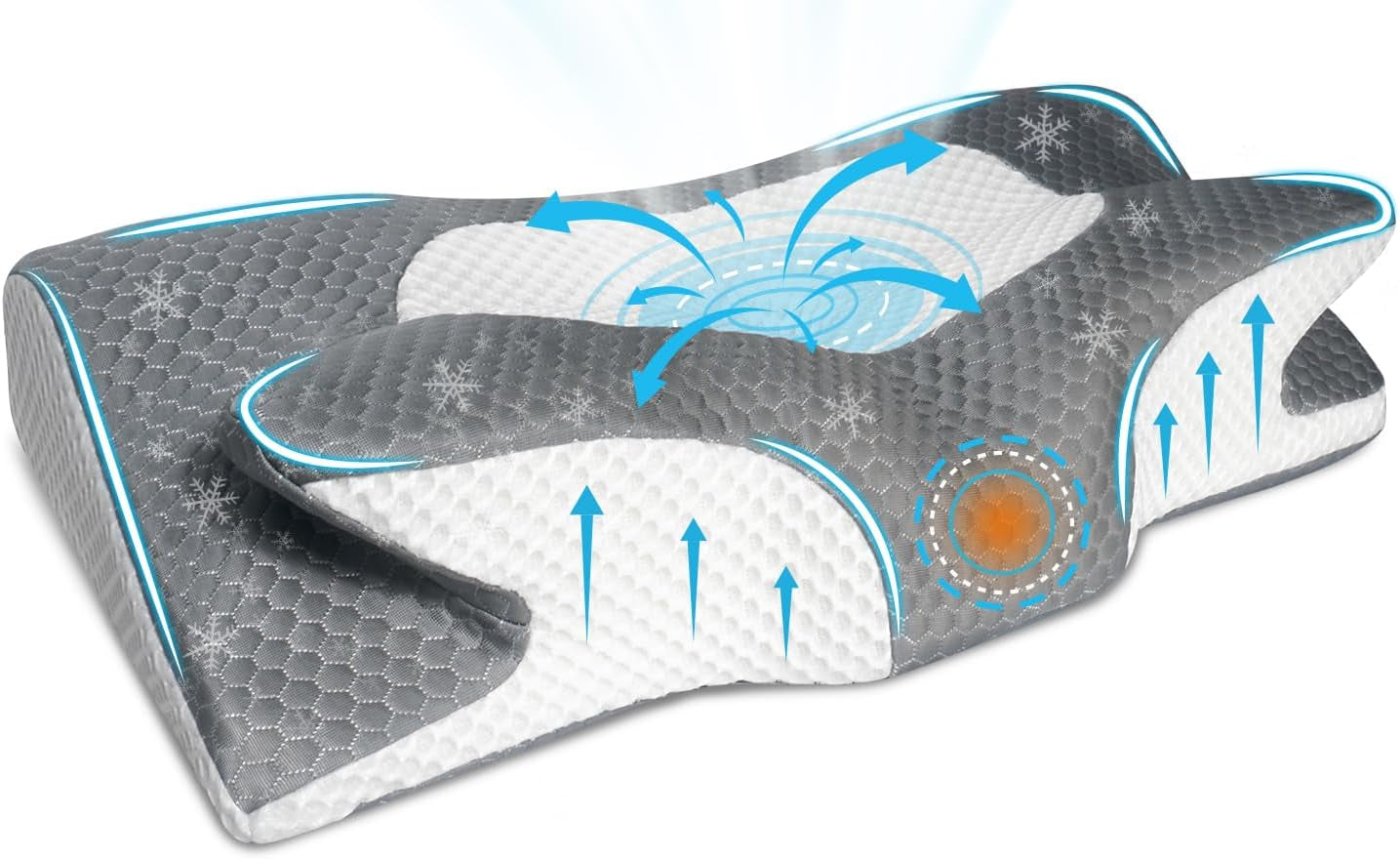 - ã€'Design versatil pentru toți dormințiiã€'Această pernă pentru dureri de gât are un design ergonomic care urmărește curba naturală a gâtului, oferă un suport excepțional pentru gât și are două înălțimi diferite din care puteți alege. Este special conceput pentru diferite poziții de dormit și poate fi folosit ca un dormitor pe spate, stomac sau lateral. ã€'Fețe de pernă răcoroase și prietenoase cu pieleaã€'Nu lăsați o pernă fierbinte și umedă să vă tulbure somnul. Fețele noastre de pernă sunt fabricate din țesătură de mătase de gheață prietenoasă cu pielea, care reduce căldura și absoarbe umezeala pentru a vă menține răcoros și odihnit noaptea.