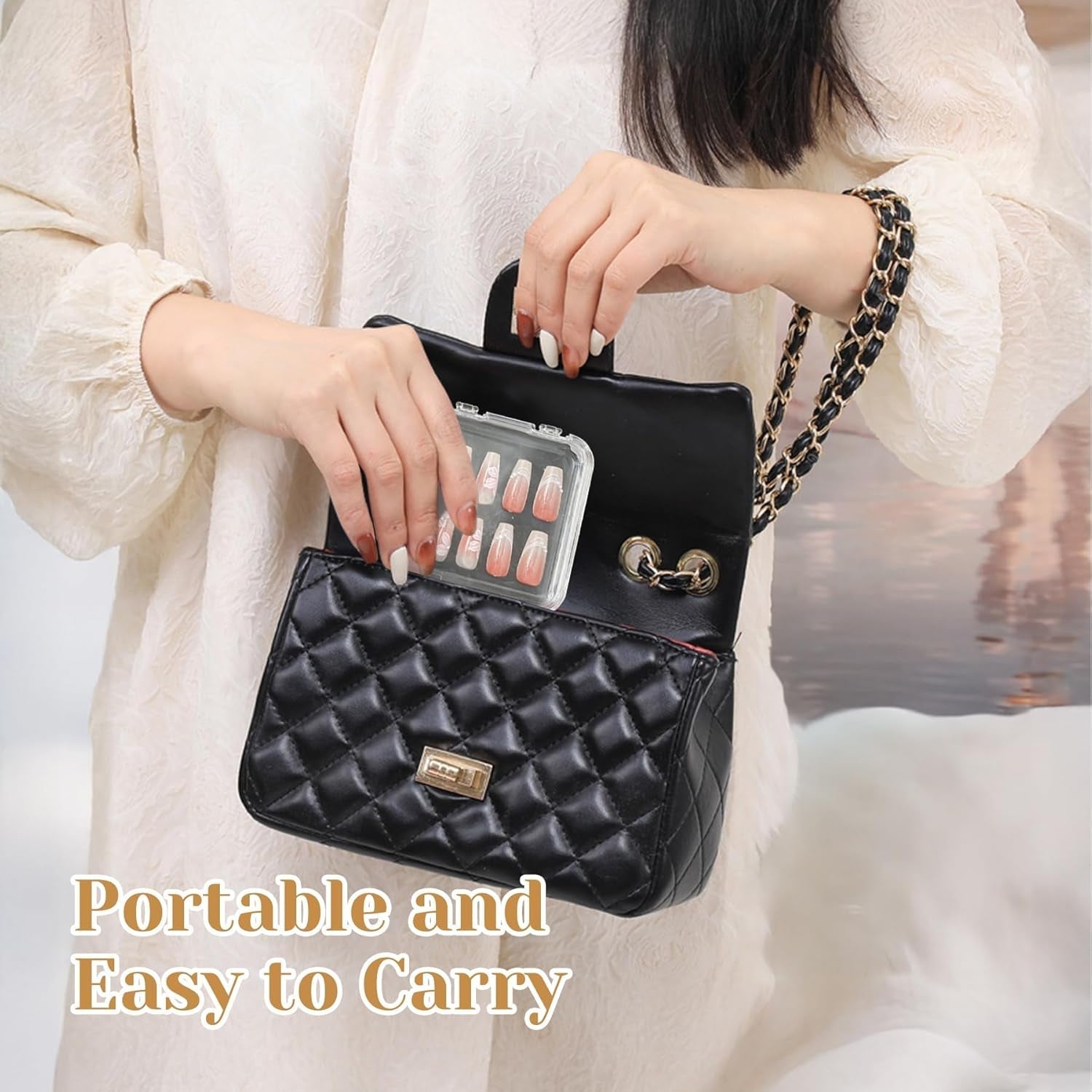 • ✔ Depozitare convenabilă și portabilitate – Cutii individuale compacte (7,6 x 7,6 x 1,8 cm) pentru 14 perechi de unghii (scurte/medii/lungi). Ușor de transportat – ideal pentru deplasări, salon de unghii sau afaceri DIY cu unghii. Gata cu haosul!