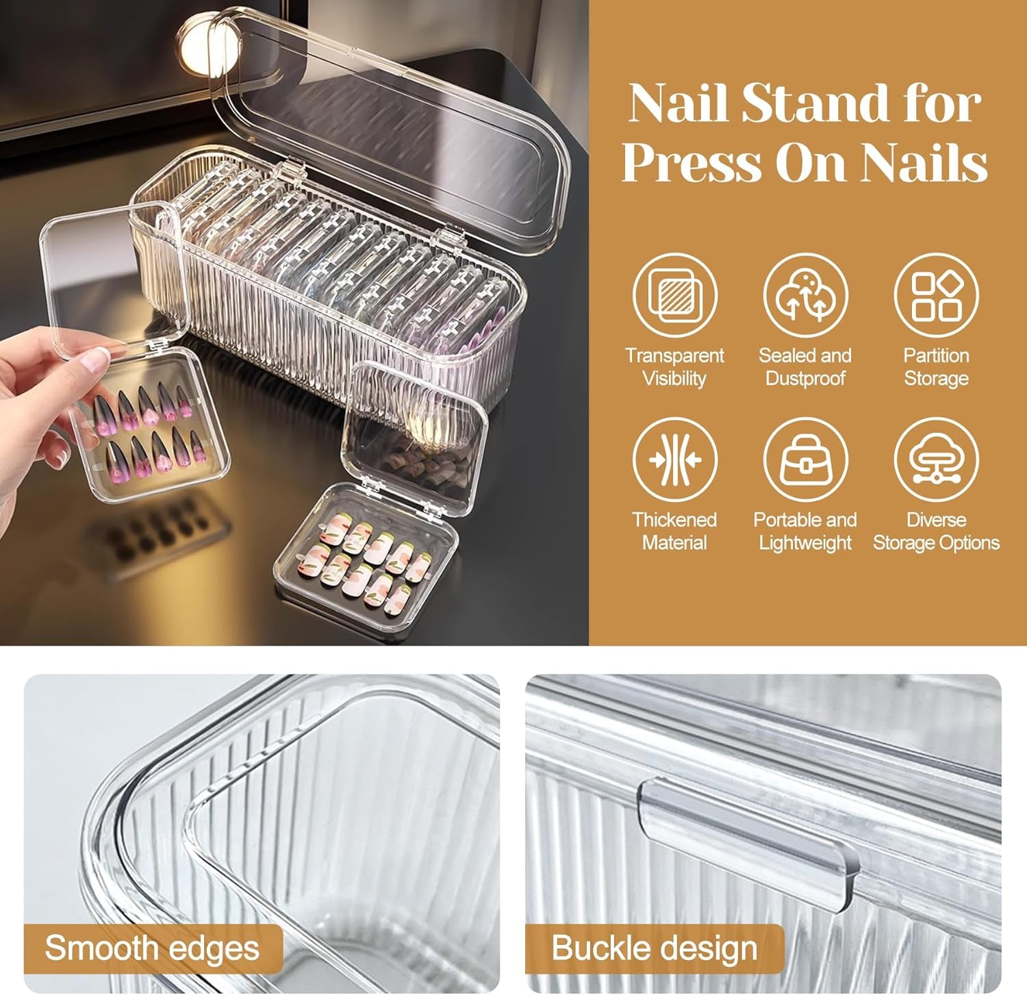 • ✔ Set complet de accesorii pentru unghii – Conține 14 cutii transparente pentru unghii, 1 cutie mare de depozitare din acril (25 x 9 x 9 cm) și 60 de dischete adezive față-verso puternice. Perfect pentru organizarea unghiilor artificiale, a unghiilor cu gel și a modelelor de unghii – fără amestecare!