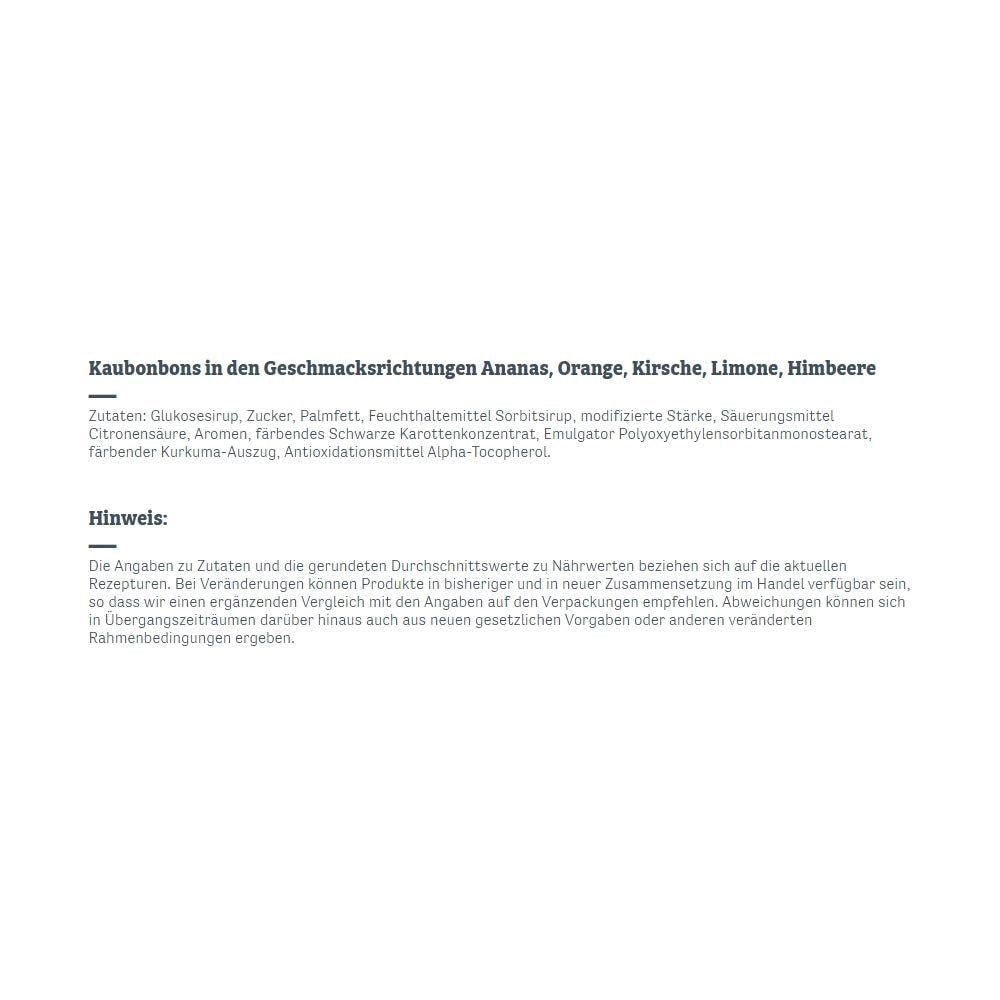 Storck Kaufrüchtchen sunt bomboane delicioase, în cinci arome: ananas, portocale, cireșe, lămâie și zmeură - distracție dulce specială pentru copii și bătrâni.