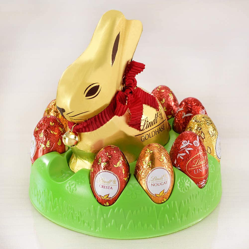- Conținut per pachet: 50 g lapte integral GOLD BUNNY, 2 x lapte LINDOR, 2 x trufe de vanilie, 2 x Cresta, 2 x nuga