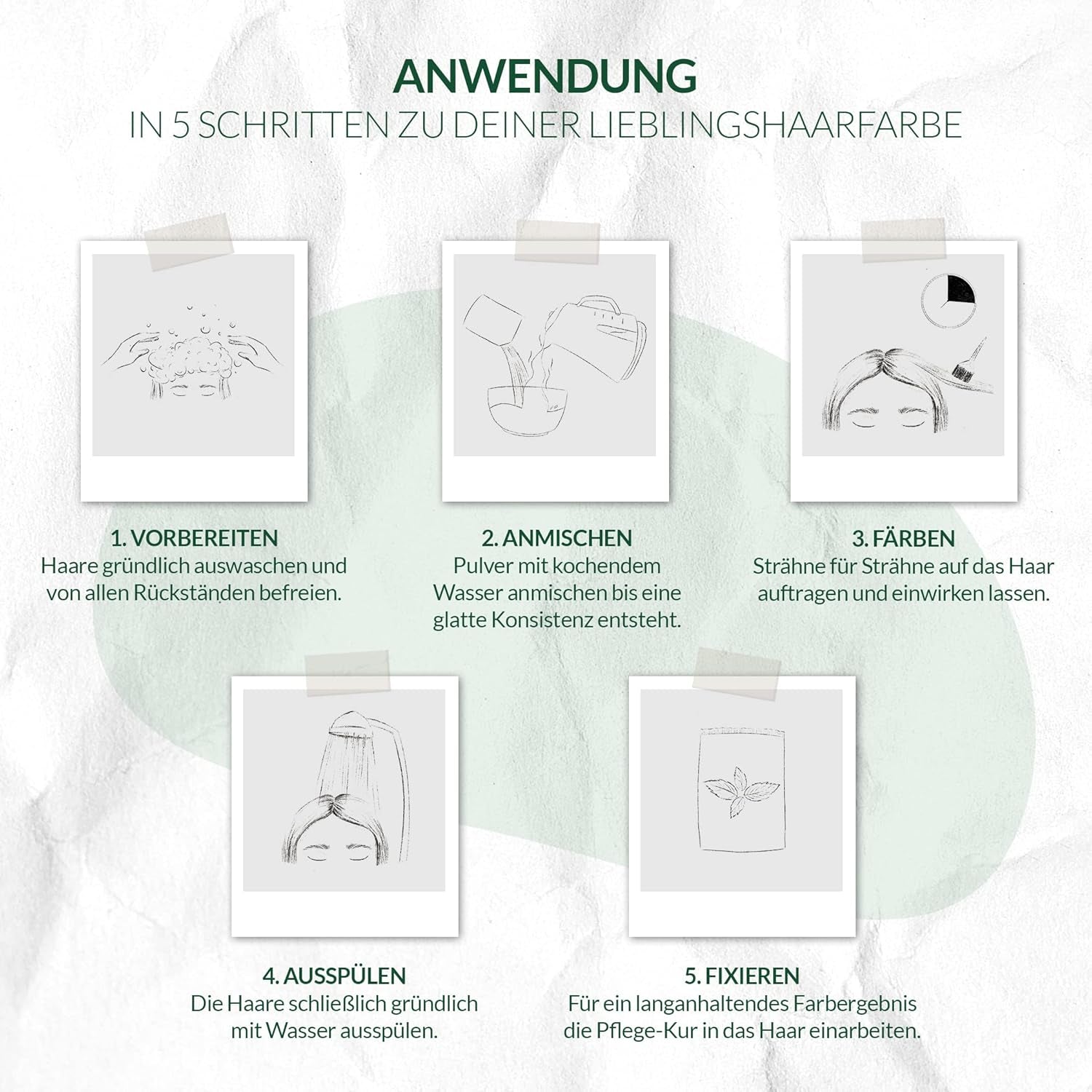 Rezultatul culorii vopselelor de păr vegetale LOGONA se bazează pe culoarea originală a părului dumneavoastră. Pentru a vă asigura că această nuanță corespunde culorii dorite, vă recomandăm să colorați o șuviță de test înainte de utilizare. NOTĂ: Vopselele de păr vegetale își dezvoltă întreaga intensitate a culorii numai după aproximativ 48 de ore; tonurile maro & negru în special se întunecă în acest timp. Acordați atenție recomandărilor privind culoarea din tabelul de aplicare. Vopselele de păr pot fi aplicate numai pe pielea intactă. Nu inhalați praful de pulbere care poate fi produs în timpul amestecării. Acest lucru poate declanșa reacții de intoleranță. Vopselele de păr pentru plante trebuie amestecate cu apă clocotită.
