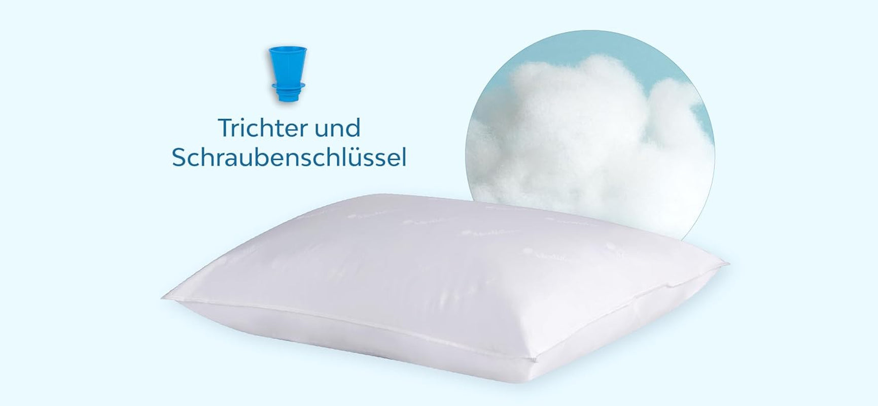 - O pâlnie de umplere la îndemână (1 bucată per pachet dublu), instrucțiuni de umplere și instrucțiuni de îngrijire incluse, ideală pentru alergici datorită celei mai bune alegeri de materiale - certificată Oeko-Tex. Apa normală de la robinet este suficientă pentru umplere (nu utilizați niciun aditiv)