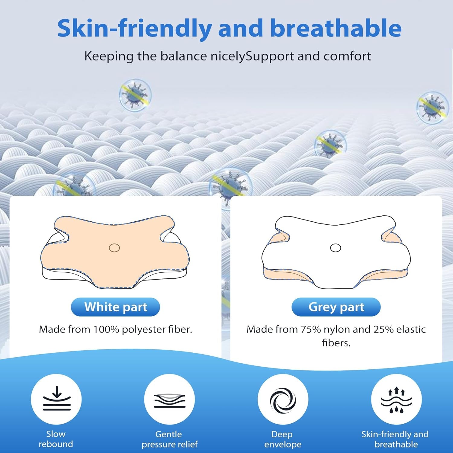• Dacă încă vă chinuiți să găsiți perna cu înălțimea potrivită, pernele noastre cervicale au 2 înălțimi diferite la alegere pe ambele părți, astfel încât să puteți alege perna potrivită care se potrivește mai bine posturii dvs. de dormit. Și există caneluri specifice care permit brațelor dvs. să doarmă confortabil dedesubt. Această pernă este potrivită pentru toate tipurile de posturi de dormit, cum ar fi stomacul, spatele și somnul lateral.