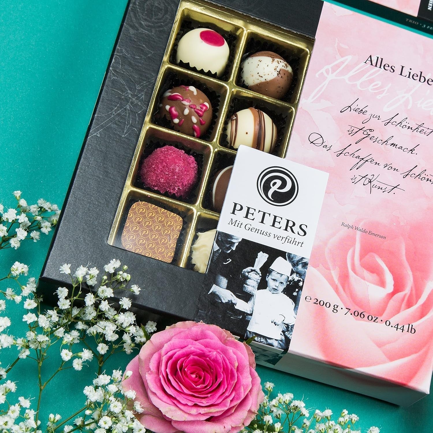 Peters Pralinen este un producător de ciocolată și biscuiți de înaltă calitate și reprezintă tradiția familiei și cea mai înaltă artă a cofetăriei de peste 80 de ani. Produsele Peters sunt fabricate din cele mai bune ingrediente, a căror prospețime și calitate excepțională se reflectă în fiecare pralină și biscuit. Nu numai ciocolata și trufele fac produsele Peters unice, ci și designul elegant și inconfundabil al fiecărui ambalaj. Calitatea ridicată și constantă, dragostea pentru produs și pasiunea pentru meșteșug caracterizează produsele Peters astăzi, la fel ca acum 80 de ani.