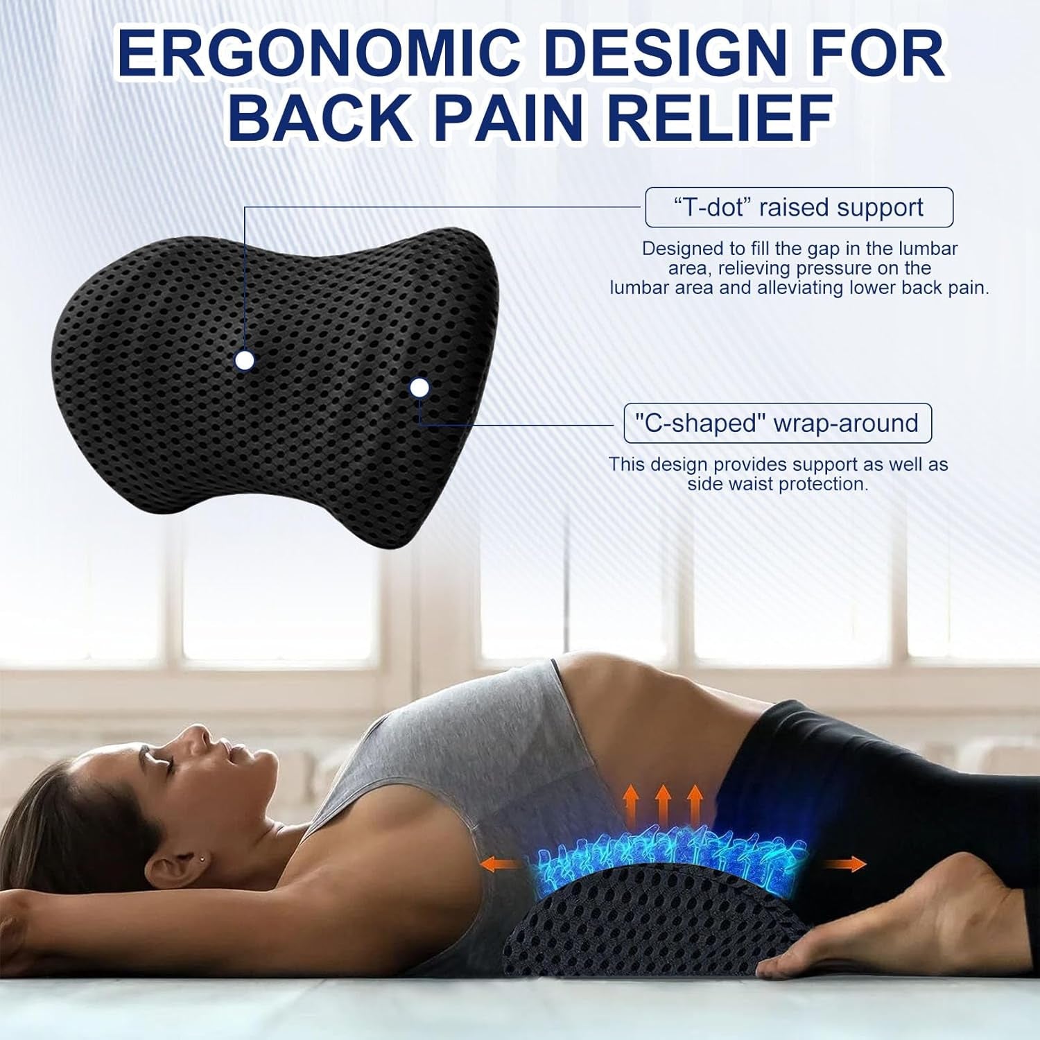Raxfekro pernă lombară pernă spate, pernă lombară ergonomică din spumă cu memorie, pernă spate pentru susținerea spatelui, pernă suport lombar pentru scaune auto și scaune de birou (negru)