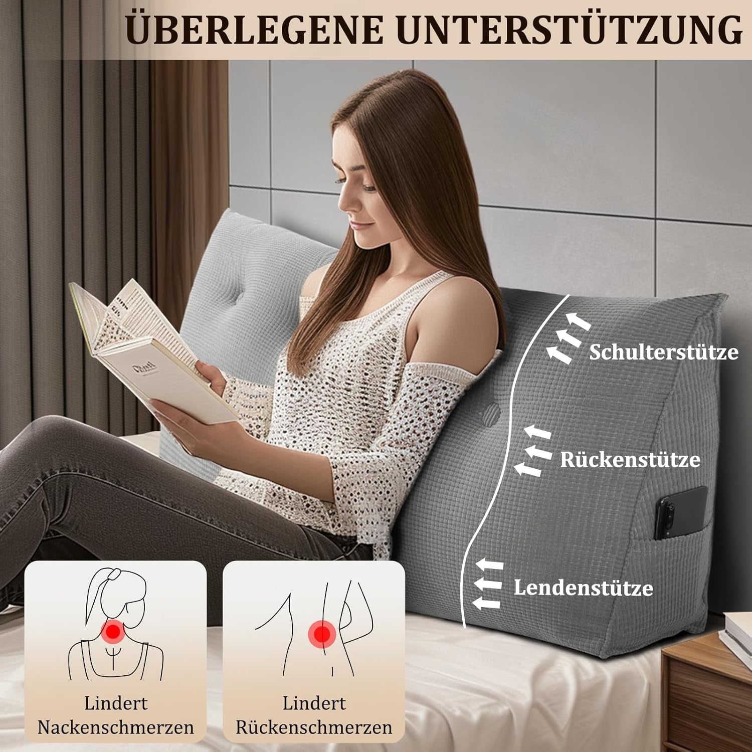 • Umplutură perfectă, suport stabil: Această pernă triunghiulară are un design unic de pană și este umplută cu bumbac de înaltă calitate. Umplutura special tratată își păstrează forma și elasticitatea chiar și după o utilizare prelungită. Oferă suport continuu, reduce presiunea asupra spatelui și gâtului și ameliorează durerea cauzată de obiceiurile de postură greșite. Fie că citiți, vă uitați la televizor sau vă relaxați - cu această pernă de lectură vă veți bucura întotdeauna de momente plăcute