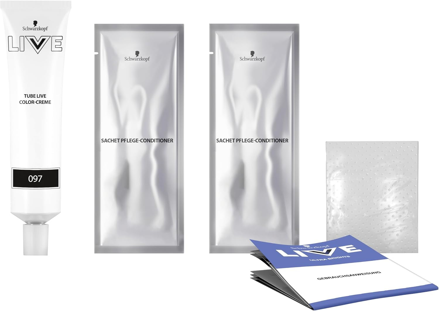 Schwarzkopf LIVE Ultra Brights - Cremă colorantă semipermanentă pentru rezultate intense sau pastelate Culoarea LIVE Ultra Brights oferă rezultate intense sau pastelate care durează 12-15 spălări, în funcție de tipul de aplicare: Aplicată direct, conferă părului o strălucire intensă, amestecată cu balsamul inclus oferă un aspect pastel. Colorantul temporar pentru păr este potrivit și pentru toate tipurile de păr. Balsamul inclus cu complex de vitamine & ulei asigură o îngrijire intensivă a părului după colorare. Rezultatul: o senzație de păr mătăsos și o culoare de păr intens strălucitoare sau subtil pastelată. Nuanța vine într-un tub de aluminiu 100% reciclat, o cutie de carton reciclabil, nu conține siliconi & alcool* și are o formulă vegană fără ingrediente de origine animală. Beneficiile produsului în detaliu: Vopsea semipermanentă pentru culori intense sau pastelate Rezistă la 12-15 spălări Strălucire luminoasă Pentru toate tipurile de păr Tratament ulterior hrănitor cu complex de vitamine & ulei 0 % siliconi & alcool* Formulă vegană fără ingrediente de origine animală * Alcool etilic Aplicare: 1. Protejați-vă hainele și folosiți mănușile incluse. Folosiți crema colorantă pe părul uscat, nu pre-spălat. 2. Aplicați crema de culoare LIVE pe întregul păr și masați. Pentru un rezultat pastel, amestecați în prealabil cu balsamul anexat. 3. Lăsați să acționeze timp de 15 minute. Pentru un rezultat de culoare mai puțin intens, timpul de aplicare poate fi scurtat. 4. Clătiți bine părul până când apa curge limpede. 5. Aplicați balsamul de îngrijire bogat cu complex de vitamine & ulei pe părul umed, lăsați să acționeze timp de 2 minute și apoi clătiți-l. Detalii suplimentare despre tratamentul Ombré & Highlights pot fi găsite în instrucțiunile de utilizare.
