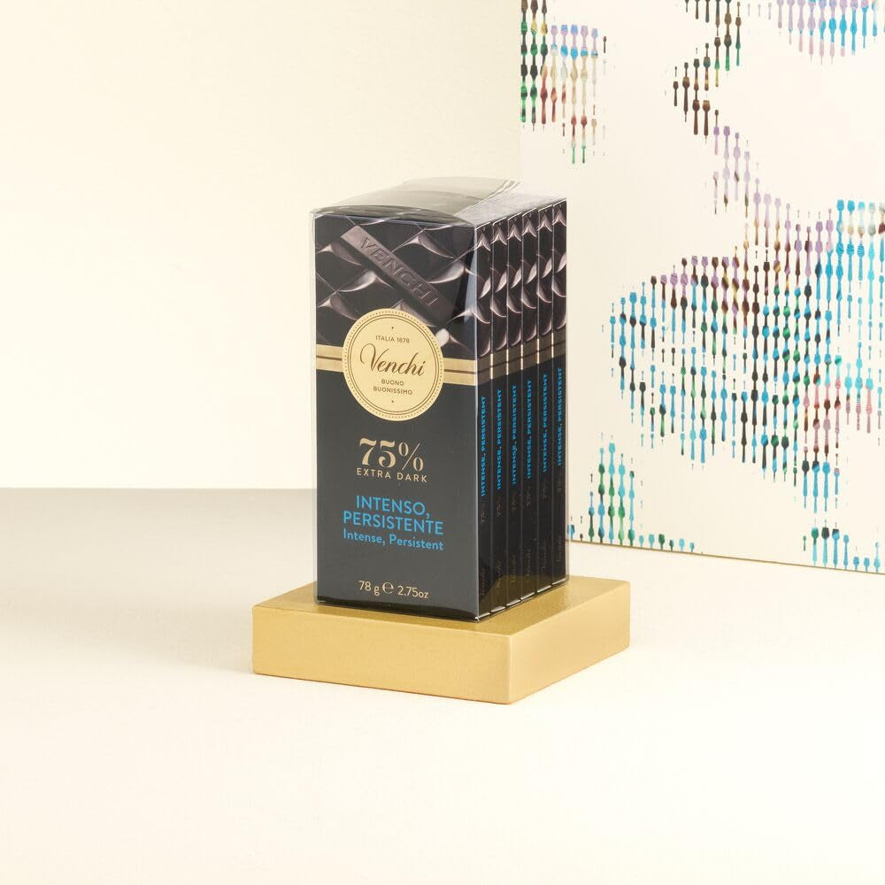 Venchi, Set de 6 tablete de ciocolată neagră extra 75%, 468 grame Bomboane de Ciocolata Naty Shop 6 bucăți Ciocolată neagră 75