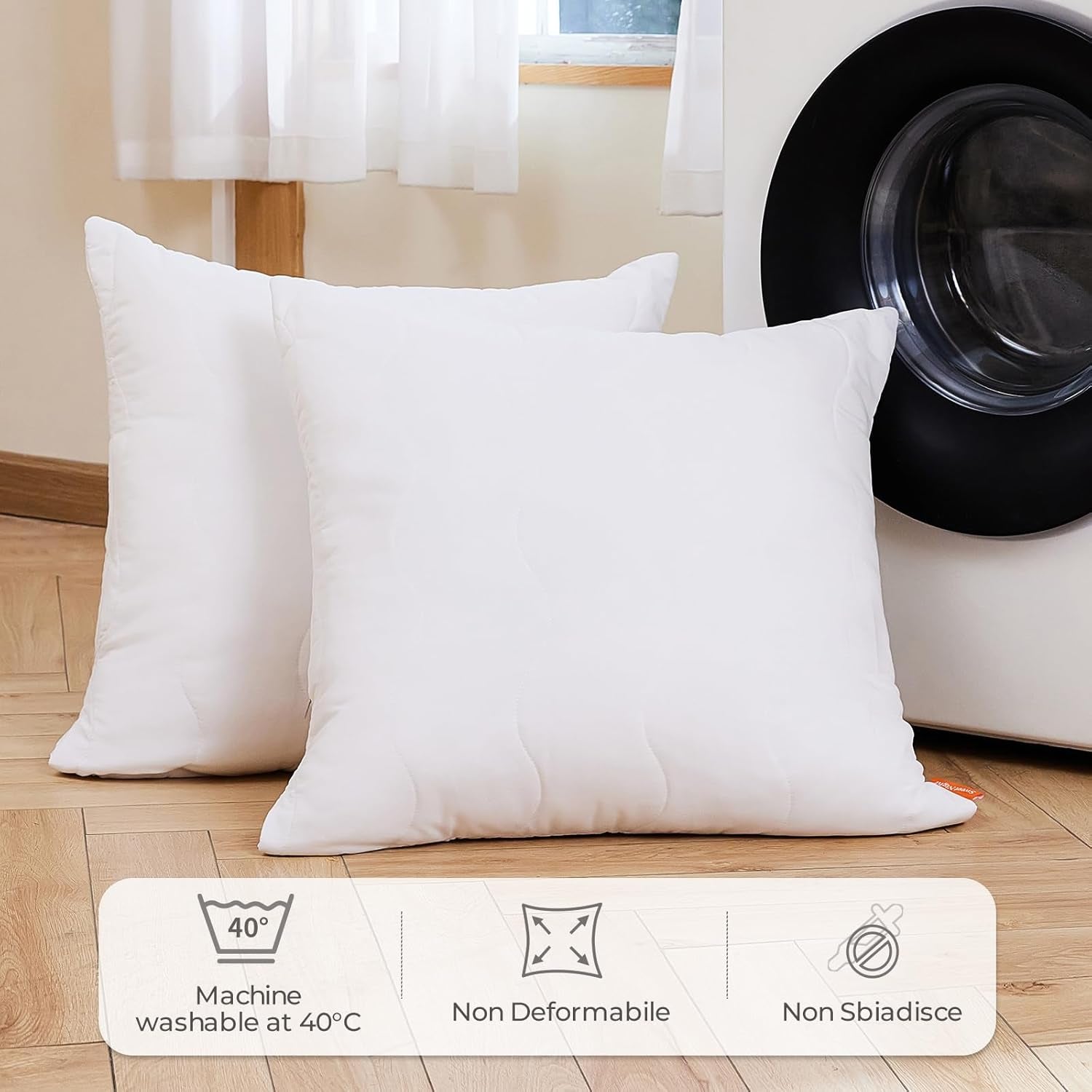 Pernă Sweetnight 40X40 Set de 2, umplutură de pernă din fibre de lemn din poliester, pernă moale și de susținere pentru toate pozițiile de dormit, pernă de dormit respirabilă, lavabilă cu fermoar