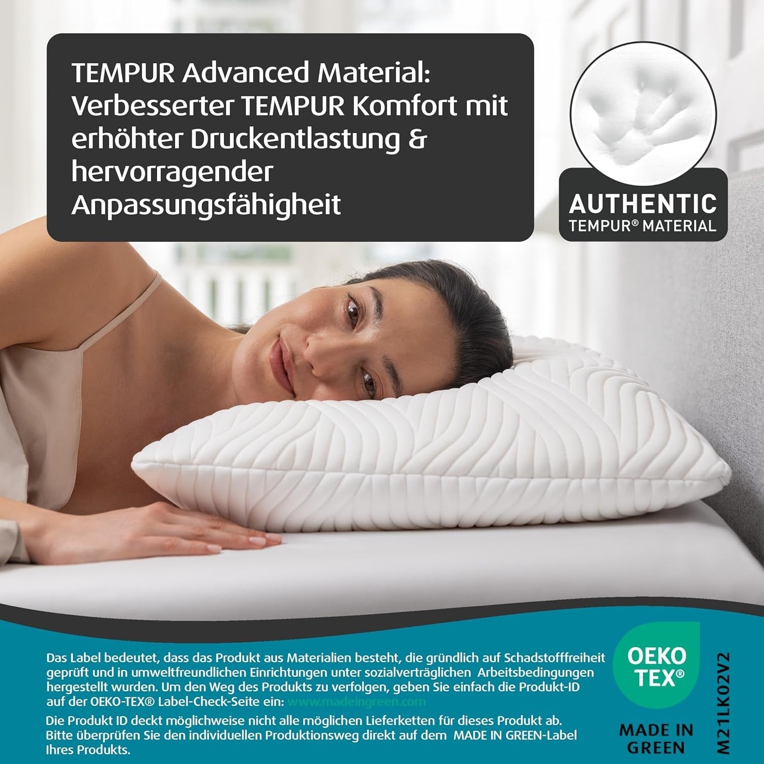 Pernă de dormit TEMPUR Comfort Medium, Pernă clasică pentru toate pozițiile de dormit, Husă lavabilă, OEKO-TEX MADE in GREEN, Fermitate medie, 40 X 80 Cm