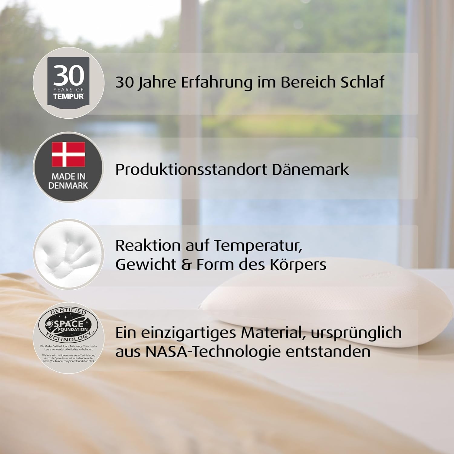 Pernă din spumă cu memorie TEMPUR Sonata, pernă ergonomică de susținere a gâtului pentru dormit pe spate și lateral, fermă, M (61 X 40 X 11 Cm)