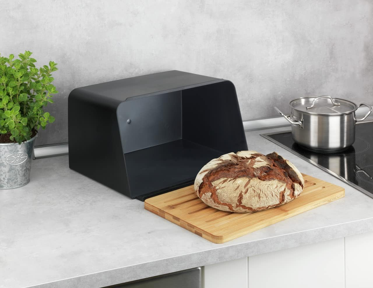 - Mix de materiale pentru tendințe de amenajare: Cutia de pâine Kubo de la WENKO combină culorile la modă cu materialele de înaltă calitate și multifuncționalitatea. Cutia de pâine din plastic ABS negru impresionează peste măsură în combinație cu placa de tăiat din bambus integrată. Inteligent: placa de bambus funcționează, de asemenea, ca un suport pentru tavă, astfel încât să aveți întotdeauna rețetele la vedere. Ajutor casnic sustenabil: Bambusul punctează cu randamente ridicate și impact redus asupra mediului. Tabla de tocat rustică arată grozav, ceea ce o face o adevărată atracție pentru ochi și se integrează perfect în interiorul dvs. Tabla de tocat este o parte esențială a oricărei bucătării. De asemenea, aspectul naturalist conferă imediat camerei o ambianță caldă și naturală!